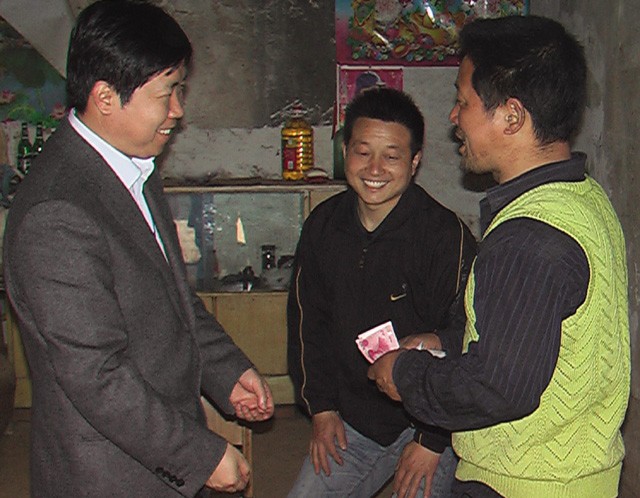 “三万”活动开展以来,曾都一中先后选派100多名党员干部深入到府河镇孔家畈村,进村入户察民情解民忧。图为该校主要负责人向困难群众发放慰问金。(本报记者 杨闻名 通讯员 李晓艳 占静摄)