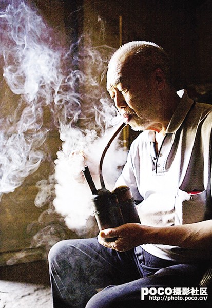 爷爷通常是三餐之后或是干活之余吸上几袋烟。干活累了之后,他坐下来,美美地抽上几口,全身的疲劳似乎消释了许多。但这样的情形下抽烟的时间有限,总是匆匆抽完之后又去忙他的事情去。