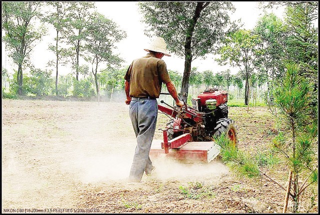 驾起手扶耕耘在田野