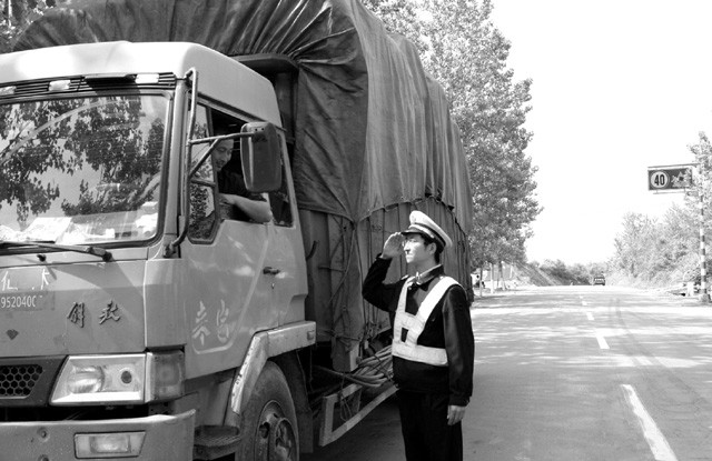 随县交警大队殷店中队(四中队)的干警,放弃“五一”节假日休息时间,坚守岗位,严查超速等行为,以确保人民群众生命财产的安全。图为该中队的干警正在执行公务。(本报记者 张顺 通讯员 姚磊 摄)