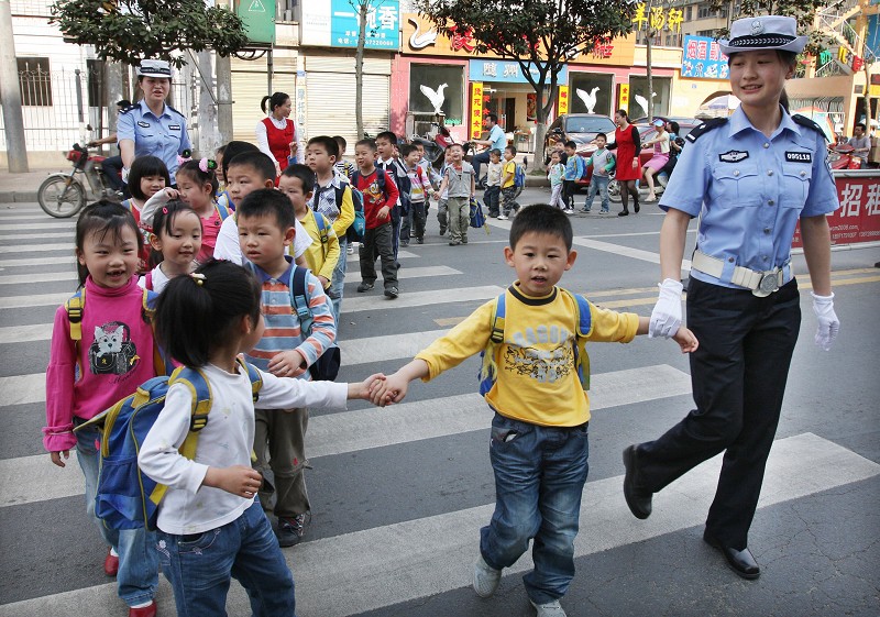 4月28日,随州市交警支队一大队“护卫天使女警队”在辖区幼儿园路段保护学生安全过马路。 为改善校园周边道路交通环境,维护行车秩序,全力保障中小学生和幼儿交通安全,市公安交警部门在全市组织开展保护中小学生和幼儿安全的“护卫天使行动”。 在城区容易造成交通拥堵的中小学校、幼儿园门前,设立固定的交警“护卫天使岗”;组建“护卫天使女警队”,深受学生家长欢迎。 (本报记者 杨闻名 通讯员 张 宁摄)