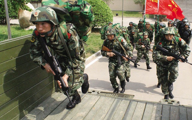 为做好世界华人炎帝故里寻根节安保工作,武警随州市支队适时组织反劫持、反爆炸、防破坏实战演习,并进一步完善了处置此类突发事件的应急预案。图为该支队处置小分队快速出击时的情景。 (本报记者 杨闻名 通讯员 汪波摄)