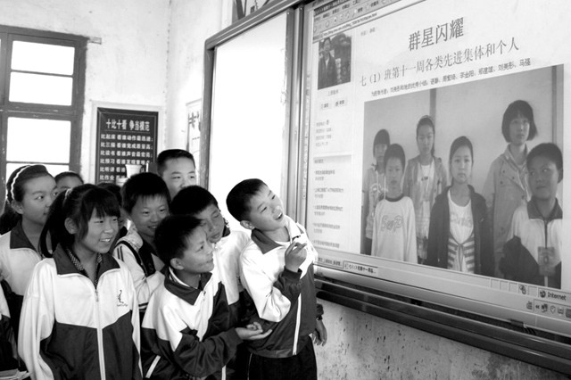 学生们享受着成功的喜悦,家长们也分享着孩子成功的快乐。“刘老师让我们把他的博客地址告诉家长,上周我被评为‘进步之星’,回家后,我马上给远在北京的爸妈打电话,让他们上网看看我的照片。”留守生张献兴高采烈地说。