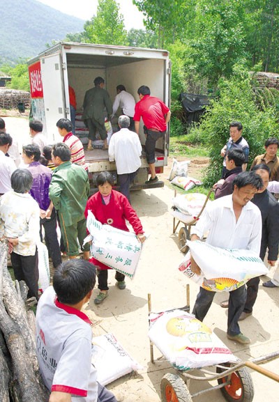 5月11日,市邮政局“三万”工作组将30吨化肥分别送到大洪山风景名胜区长岗镇黄木淌村、随县殷店镇天峰村村民手中。该局工作组自驻村以来,先后筹集资金数万元为山区乡亲建小型水库、修拦河坝、送物资。(本报记者 杨闻名 通讯员 沈献智 摄)