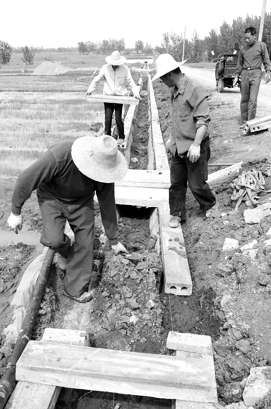 五月七日,随县万福店农场魏家岗村村民正在高产农田修砌渠道。该农场投资二千零四十万元在黑龙口、魏家岗村高标准建设的一万五千亩高产农田示范片即将竣工。该项目建成后可新增节水灌溉面积零点八五万亩,新增粮食产量八十四点四万公斤。(本报记者李文军摄通讯员李方文)