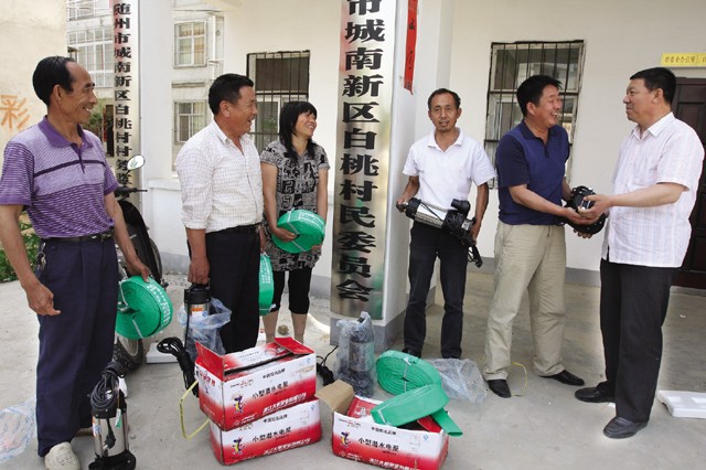 眼下正值春耕备耕时期,城南新区白桃村1300多亩农作物受旱,90%的堰塘少水或干枯,2000多人畜饮水困难。5月14日,曾都区能源局驻村工作组得知情况后及时送去8台潜水电泵和灌溉水管,支持村民抗旱。(本报记者 杨闻名 通讯员 李成涛 摄)