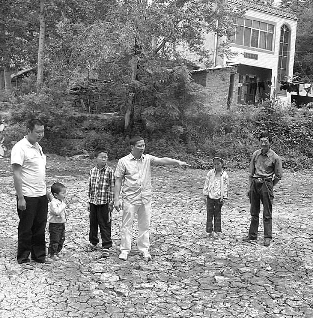 图6:五月十日,随州经济开发区淅河镇长岭村近四百口堰塘干枯或少水,两千多亩农作物受旱,二千四百多人畜饮水困难。目前一些村民家里耕牛没有饮水,只好“投亲靠友”。(本报记者 孙洪涛 李文军 杨闻名摄)