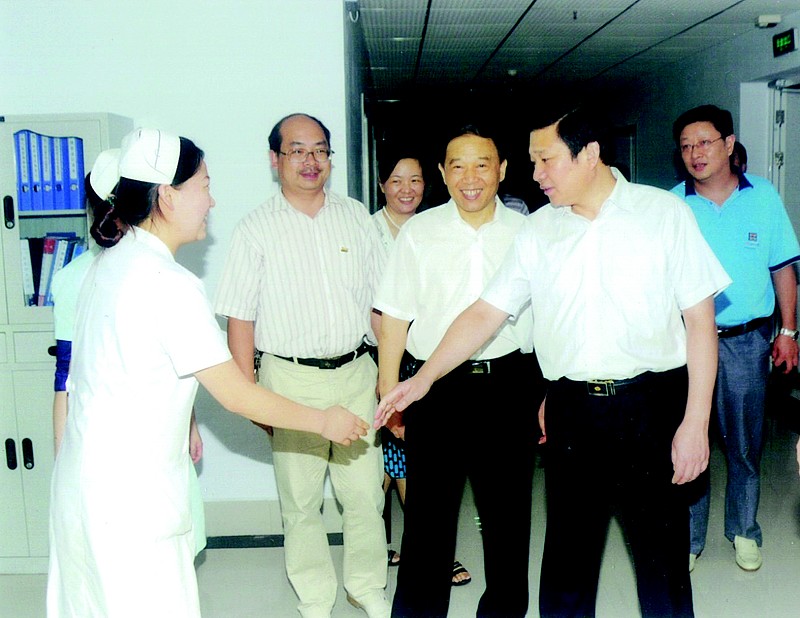市委书记王祥喜(右二)在市卫生局党组书记、局长裴在刚(右三)的陪同下来医院调研