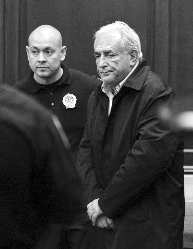 当日在纽约曼哈顿刑事法院举行的听证会上,斯特劳斯-卡恩仍旧穿着被捕时的黑色外套,神情严肃。纽约法官梅利莎·杰克逊认为斯特劳斯-卡恩有潜逃风险,禁止他被保释,并宣布他在5月20日再次出庭前被继续关押在监狱里。