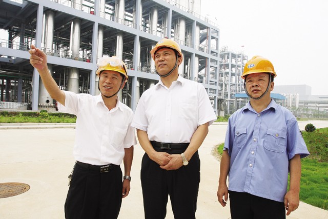 市质量技术监督局局长杜洪顺(中)带领检测人员服务市重点工程“多晶硅”项目