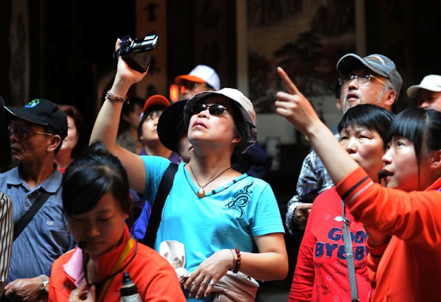 5月19日是首个“中国旅游日”,这一天,也是明朝大旅行家徐霞客著名的《徐霞客游记》开篇之日。《徐霞客游记》中以《游天台山日记》作为开篇,记录多篇游记,成为后人文化旅游的典范。本次“中国旅游日”以“读万卷书、行万里路”为主题,全国各主要景区将推出免票或打折活动以表庆祝。图为游客在安徽黟县宏村古民居内参观拍摄。 (新华社发)