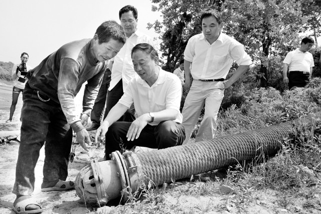 5月18日,市卫生局机关干部到驻点村广水市关庙镇光明村支援抗旱。得知村中1600多亩农作物受旱,30多口塘堰少水或干枯,该局积极筹资6万元,帮村整修堰塘和水渠,并送去抗旱物资。 (本报记者 杨闻名 通讯员 杨国华 摄)