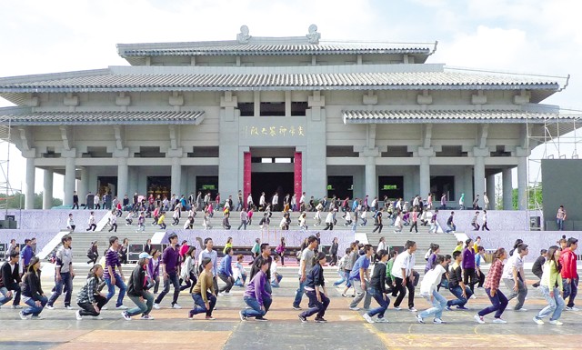 5月23日,随州职业技术学院近500名参加寻根节文艺表演的学生前往炎帝神农广场进行首场实地排练。 (本报记者 李文军 摄)