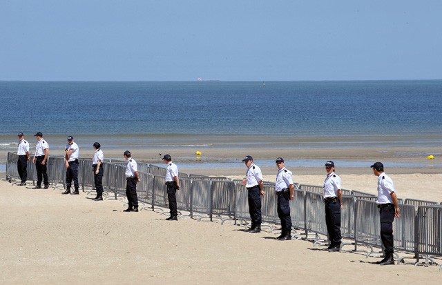 5月25日,警方在法国北部海滨小镇多维尔封闭海滩。八国集团峰会将于5月26日至27日在多维尔举行。法国共投入了各类安保人员约1.2万名,以确保会议安全。 (新华社发)