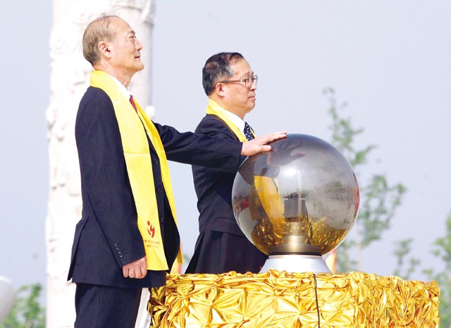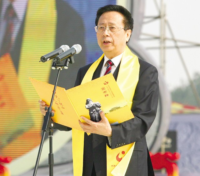 图一:全国人大常委会副委员长陈昌智宣布 “辛卯年世界华人炎帝故里寻根节暨拜谒炎帝神农大典”开幕。(孙洪涛 摄)