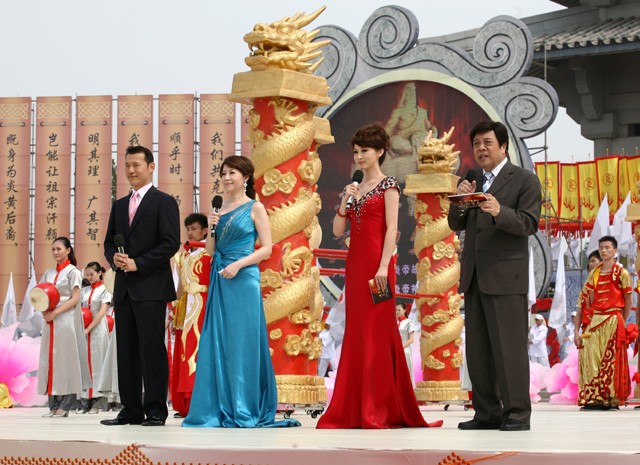 赵忠祥和湖北卫视、凤凰卫视、台湾东森电视台主持人一起主持庆典盛况