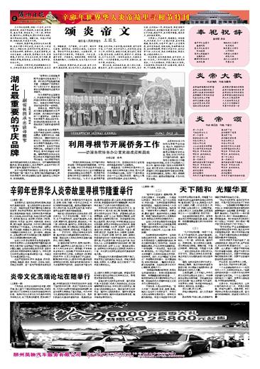 湖北省人民政府省长 王国生 几千年社戏村歌,传颂一个名字;五千年春雨秋风,滋润万里城邦。大哉炎黄,根繁叶茂;盛矣华夏,源远流长。一年一度,钟鸣乐奏;随州烈山,凤舞龙翔。贺炎帝神