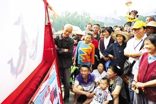 ·炎帝神农文化庙会上皮影戏逗乐观众