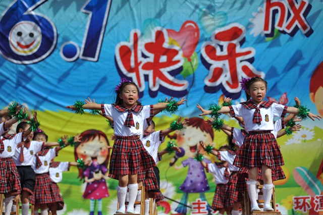 5月31日,随县环潭镇小学沉浸在庆“六一”的欢乐气氛中。1000余名儿童和家长齐聚一堂,共同欣赏孩子们自编自演的庆“六一”文艺节目。 (本报记者 李文军摄)
