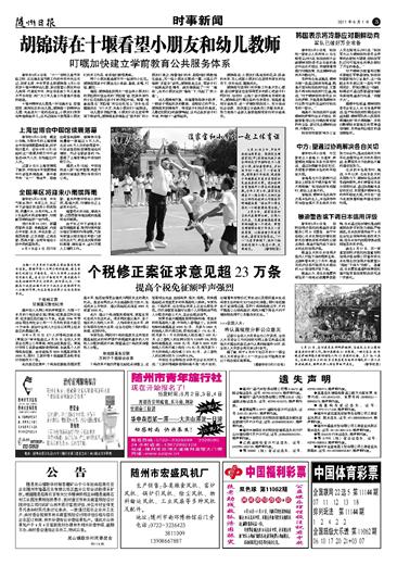 新华社5月31日电 “六一”国际儿童节来临之际,正在湖北省考察工作的中共中央总书记、国家主席、中央军委主席胡锦涛,5月31日来到十堰市柳林幼儿园,亲切看望小朋友和幼儿教师,代表党中央,向全国各族少年儿童表示节日祝贺,向广大少年儿童工作者表示崇高的敬意。 十堰市柳林幼儿园是一所设施齐全、管理规范、面向社区的幼儿园。胡锦涛一到柳林幼儿园,先走进大一班的活动室。小朋友们津津有味地做起手工。总书记饶有兴致观看小朋友们的手工作品,夸奖他们做得真棒。 两个小朋友邀请胡爷爷一起制作小红花。胡锦涛同孩子们围坐在小桌前,叠纸、系绳、打结、翻花…… 随后,胡锦涛走到用大一班全体小朋友们的笑脸照片组合成的“笑脸墙”前,把亲手制作的小红花粘贴在孩子们的笑脸中间。接着,他拿起笔在“笑脸墙”的空白处写上“快乐生活健康成长 ”8个大字,并教小朋友们一起朗读。 幼儿园多功能厅里,小朋友们正在老师带领下做游戏。胡锦涛走到准备过“独木桥”的小朋友们身边,搀着他们的手,鼓励他们勇敢地往前走。另一组小朋友正围成一圈,兴高采烈地做“彩虹伞”游戏。胡锦涛走过去,同孩子们一起掀起彩色绸布,就好像掀起了一片 “海浪”。有的小朋友钻到“海浪”下,玩起了“抓小鱼”。 幼儿园排练厅里,伴随着阵阵架子鼓声,一群孩子唱起欢快的歌曲,迎接自己的节日。胡锦涛来到排练厅,欣赏孩子们精彩的表演。儿歌《找朋友》的旋律响起,总书记走到孩子们中间,和他们一道唱起来。 胡锦涛说,小朋友们是祖国的花朵、民族的未来,衷心祝愿小朋友们在老师和家长的培育下,快乐生活,健康成长。 胡锦涛对老师们的辛勤工作表示衷心感谢,殷切希望各位老师用更多的爱心把孩子们呵护好、培育好,让每个孩子都拥有幸福的童年。胡锦涛还叮嘱在场的负责同志,要高度重视学前教育,进一步增加财政投入,充分调动社会资源,加快建立学前教育公共服务体系,努力使每个适龄儿童都能接受良好的学前教育。 |