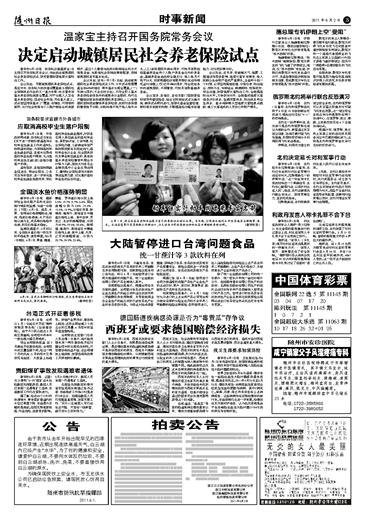 温家宝主持召开国务院常务会议 决定启动城镇居民社会养老保险试点