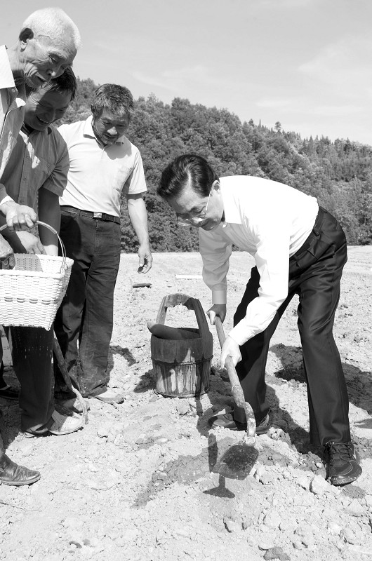 胡锦涛和村民一起补种玉米