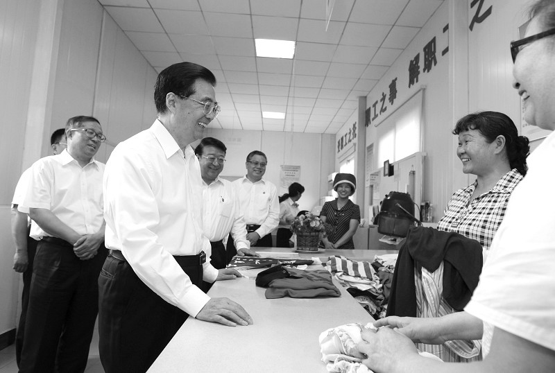 胡锦涛十分重视关系群众切身利益的民生工作,特地考察了困难职工帮扶中心和社区卫生服务中心。
