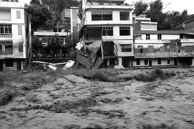 图为:暴雨引发的洪水袭击贵州望谟县城