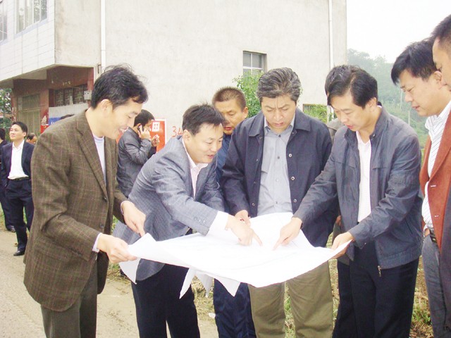 图二:广水市市委书记吴超明(前排左三)在马坪镇镇委书记、镇长刘晓界,常务副镇长方国全的陪同下到马坪视察工作。