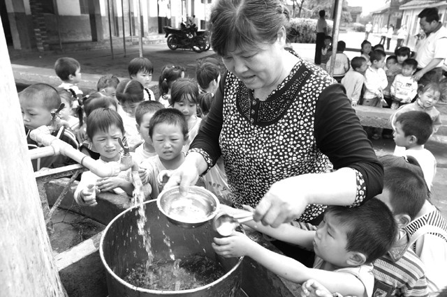 近日,曾都区洛阳镇红星小学180多名师生用上了校园蓄水池的自来水。近段持续干旱,导致该校园内堰塘少水,水质差,区委相关领导得知这一情况,组织区水利局筹资7万多元,及时对校园堰塘饮水设施进行改造,让师生们用上了安全、卫生的自来水。(本报记者 杨闻名 摄 通讯员 任学远 胡兵 文)
