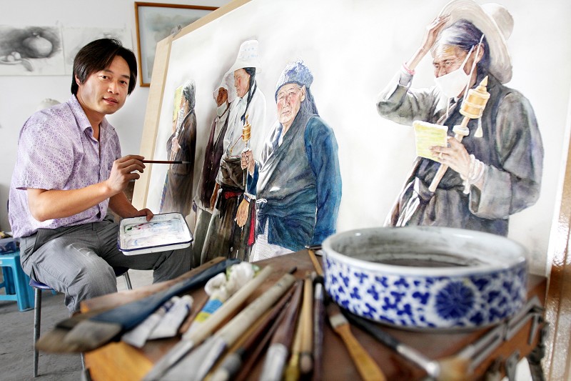 近日,随州技师学院美术教师刘恩鹤创作的水彩作品《西藏人物》在全国中职教育系统美展中获水彩类银奖。刘恩鹤毕业于湖北美院教育系水彩专业,师从全国著名水彩画家刘寿祥教授。 (本报记者 杨闻名 摄)