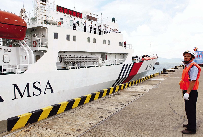 6月15日,中国海事的旗舰“海巡31”船从广东珠海高栏港海巡基地启航,前往新加坡开始约两周的访问行程。这是中国海事系统首次派遣大型海事执法船出访。