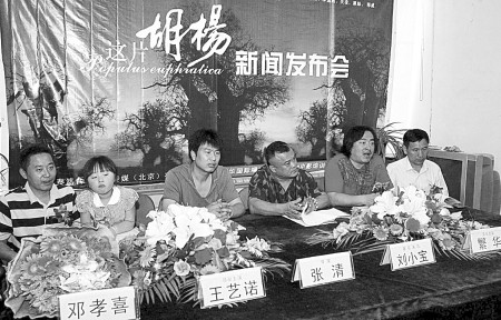 灾后心理重建一直是社会关注的话题,即将于7月开机的国内首部儿童歌舞高清数字电影《这片胡杨》就以此为切入点。日前,首次独立执导电影的河南籍导演、《武林外传》中小米的饰演者张清携剧组与观众见面 (上图),6岁的王艺诺将在影片中担任主演。