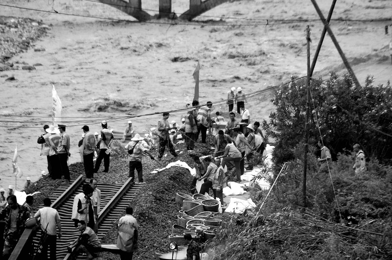 6月 20日 12时 54分,通过成都铁路局 2000余名干部职工的昼夜鏖战,因大暴雨而中断78小时多的成昆铁路抢通。6月16日夜,成昆铁路白果至普雄区段遭遇大暴雨,并引发山体溜坍,造成多处区间中断行车。图为成昆铁路白果至白石岩区间的抢通现场。(新华社发)