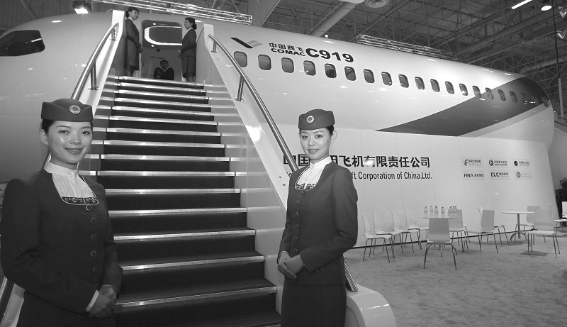 6月20日,中国自主研制的大型客机C919样机亮相巴黎航展。当日,第49届巴黎航展开幕,中国自主研制的大型客机C919样机在航展亮相,这也是C919大型客机1:1展示样机(机身前段)首次在国际最具影响力的航展上亮相。 (新华社发)