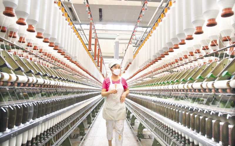 随州市兴发纺织企业有限公司是随州经济开发区淅河镇招商引资企业。近年来,该公司加大技改力度,调整产品结构,生产的棉纱等产品远销上海、深圳等市场。图为该公司工人在纺纱车间作业。(本报记者 杨闻名 摄)