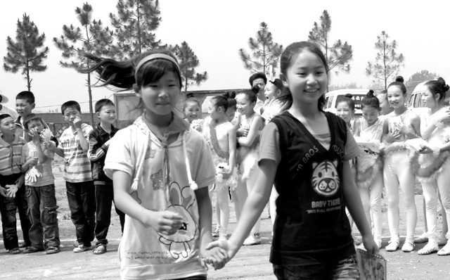 镇小的同学带来了精彩的文艺演出,魏岗的同学也上场来个“时装秀”。轮上公布一对对“手拉手”的同学名单,来自两校“结对子”的同学兴奋地走出各自的队伍,牵起手,交换礼物,参观教室、寝室、校园,一同探讨学习、生活。