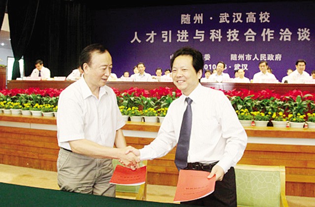 市长刘晓鸣(右)代表随州市政府与高校签订战略合作框架协议