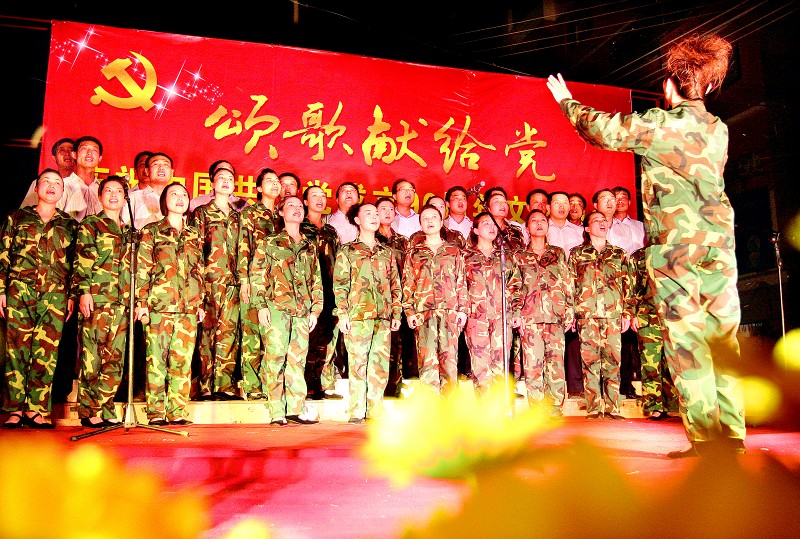 6月22日,随县万和镇街头歌声飞扬,热闹非凡,该镇举办了以“颂歌献给党”为主题的文艺晚会,数千名群众唱红歌颂党恩,共庆中国共产党成立90周年。(本报记者 杨闻名 通讯员 胡高峰 摄)