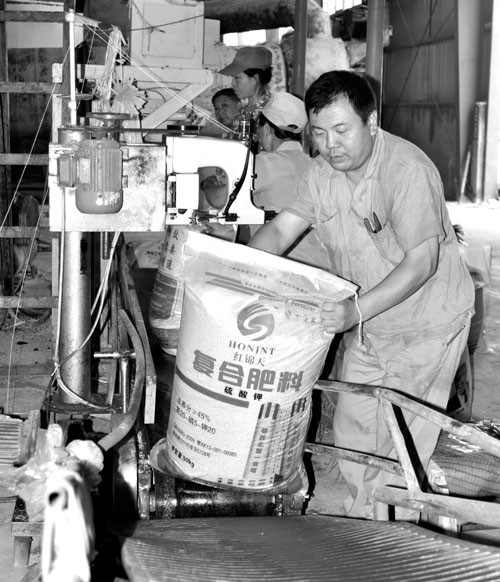 湖北三得利肥业有限公司战高温、抓生产,送肥上门,支援农业生产。 (本报记者 陈德友 通讯员 陈立馗 摄)