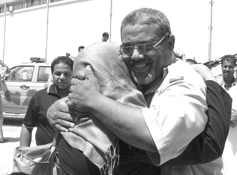 6月24日,在利比亚班加西杰里亚娜港,一对团聚的兄妹俩紧紧地拥抱在一起。当日,由红十字国际委员会组织的“尤尼斯”号客轮载着300多名平民抵达利比亚反对派大本营班加西的杰里亚娜港。这是今年2月利比亚爆发武装冲突来,第一艘从卡扎菲政权控制下的首都的黎波里出发并抵达班加西的客轮。(新华社发)