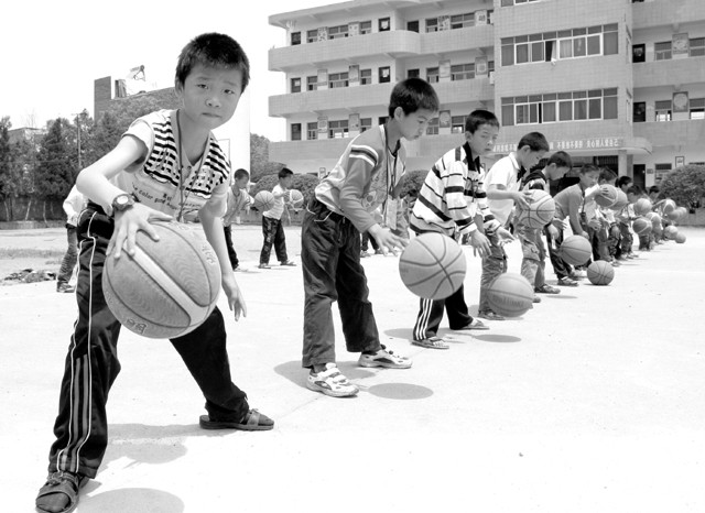 近日,我市中小学生迎来了一年一度的快乐暑假,参加旅游、健身、书画、音乐等各类文体活动成为许多学生丰富暑假生活的选择。图为曾都区万店镇小学的学生正在练习篮球控球技术。(本报记者 张顺 通讯员 廖明 摄)