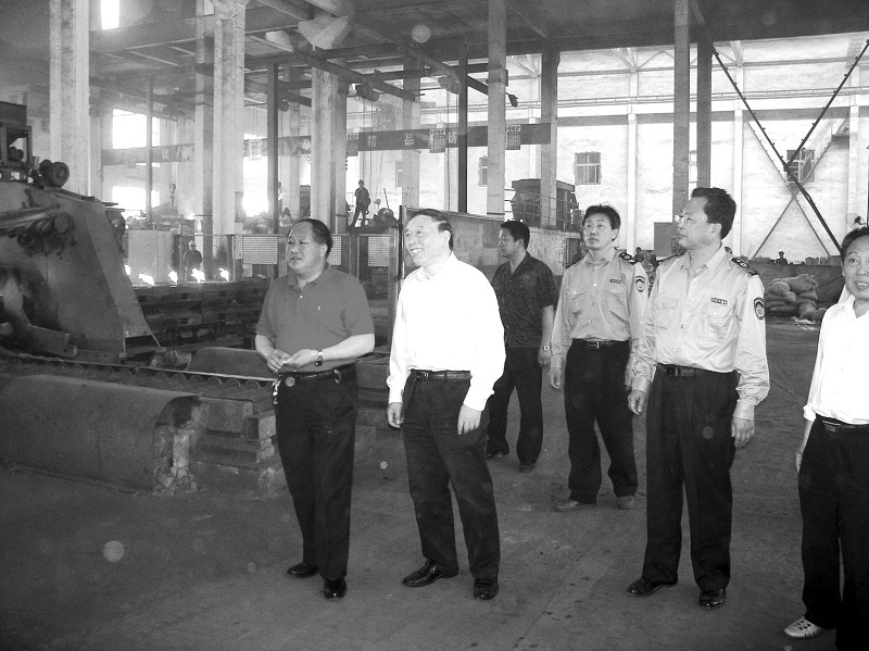 市卫生局局长裴在刚(前左二)、市卫生监督局局长王君道深入企业征求意见。
