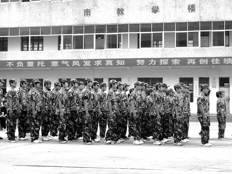 市教育局局长吴江明来白云高中检查工作白云高中十周年校庆精神抖擞的国旗班新生军训,整齐划一体育特长生刻苦训练音乐特长生精彩演出美术特长生作品