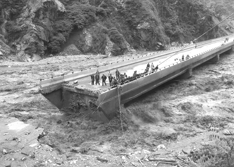 汶川映秀镇泥石流冲毁桥梁