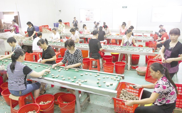 7月5日,随州宝珠峰食品有限公司车间,工人在挑选香菇。今年上半年,该公司香菇系列产品实现销售收入1亿元,出口创汇达1000万美元。