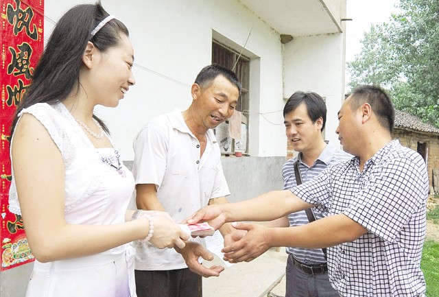 7月7日,随州市瑞龙房地产公司总经理何道军,将1万元助学金送到随县均川镇药山村贫困大学生罗珍珍手中。罗珍珍今年考上了武汉理工大学的研究生,但由于家里贫困面临缀学。随县住建局“三万”工作队干部了解这一情况后,向瑞龙公司求助。公司总经理何道军表示,将全力资助罗珍珍读研,直至其毕业。 (本报记者 李文军 摄)