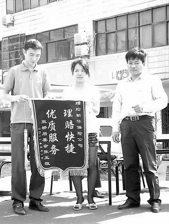 随县殷店镇街道居民张玉向新华保险随州中心支公司送来一幅锦旗