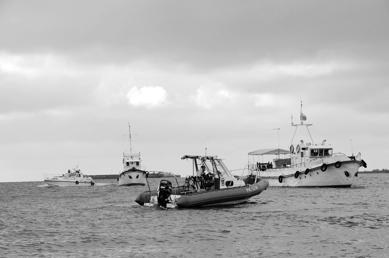 图为:7月11日,救援船只在俄罗斯鞑靼斯坦共和国境内发生沉船事故的河段进行搜救。