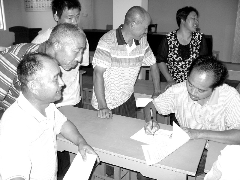 7月14日,由曾都区科协牵头,何店镇响堂街居委会20余农户与洛阳镇珍稀菇协会会长严贤涛签订了食用菌技术帮扶协议,以促进当地珍稀菇发展。 (刘长华 摄)